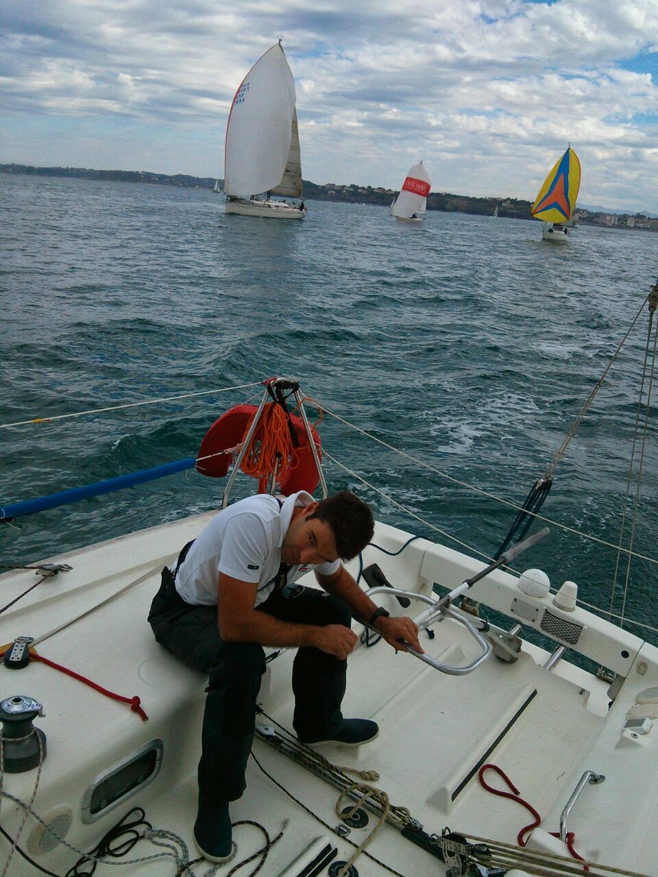 La noche en Getaria, la pasamos rodeado de amigos, comida y vino y hablando de barcos, que mas se puede pedir?. Tomas y yo dormimos en el barco, Tomas demuestra sus tablas en grandes navegadas y duerme como un angelito.Yo entre los nervios, la humedad y el ruido de las drizas, simplemente espero que amanezca. La organización de la regata de 10; instrucciones claras, pinchos y bebida para empezar a calentar el ambiente. Nos juntamos con Emi y ya estamos los tres mosqueteros listos para la batalla. Todas las dudas se resumen en una, conocemos el barco, hemos navegado mucho en invierno en condiciones duras y sabemos que va a ser difícil mantener el barco con el genova y solo tres personas en banda. Por otro lado, si salimos con el foque y bien baja el viento o se abre el rumbo tendremos que cambiar y perderemos un tiempo que puede ser valioso. Las previsiones dicen que bajará y salimos con todo.